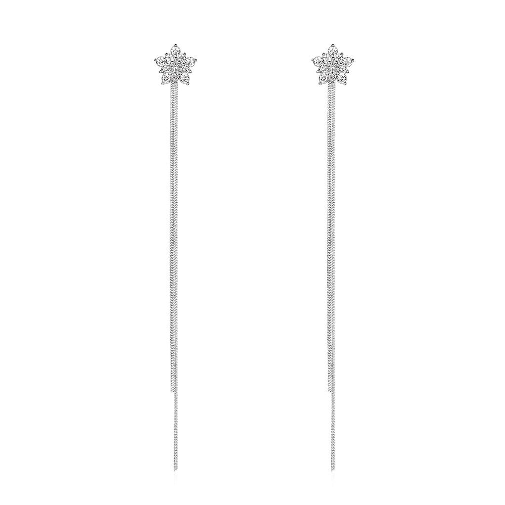ビジューシルバーロングイヤリング/ピアス CH2973