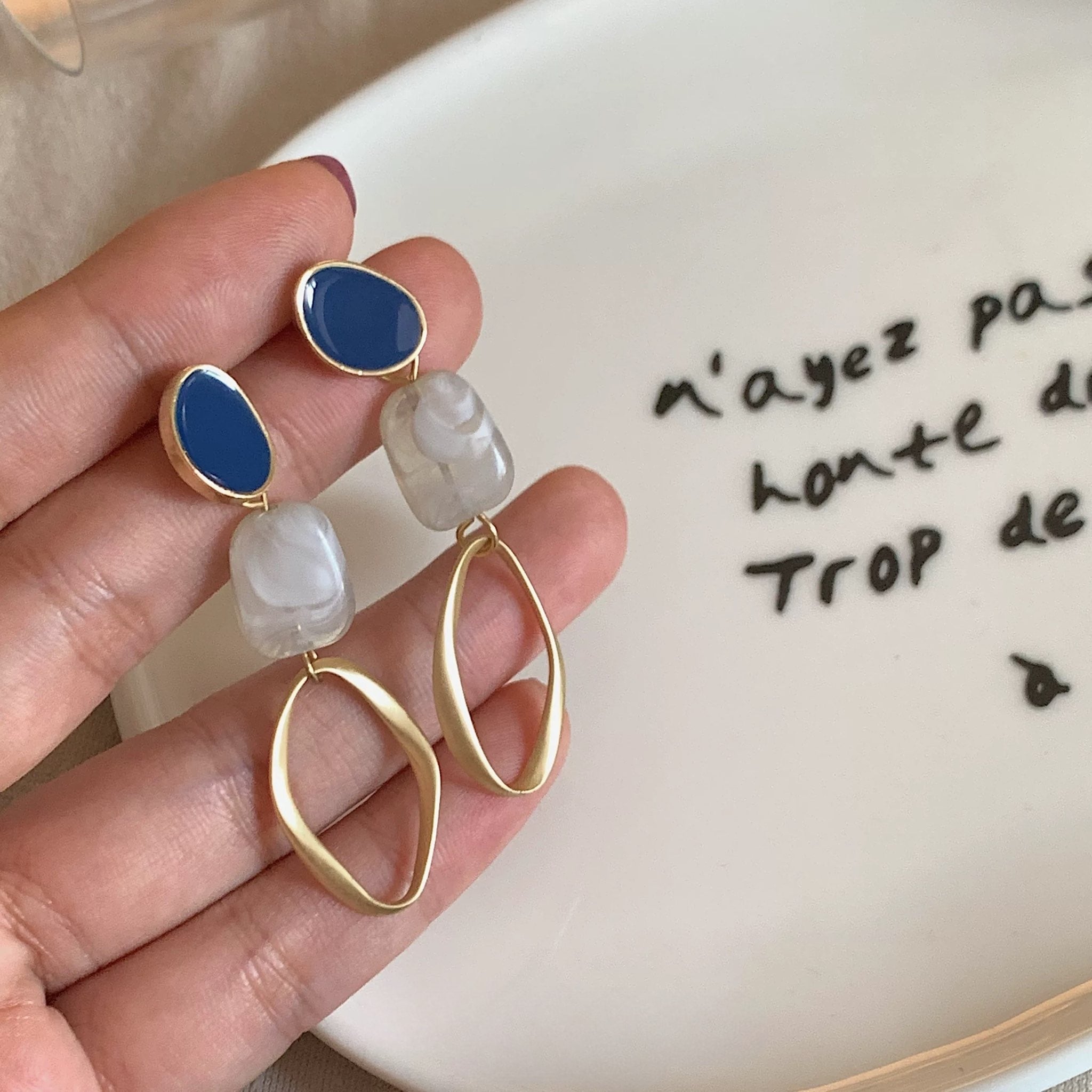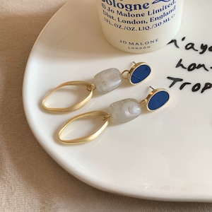 ブルー×ゴールドデザインイヤリング/ピアス CH2996