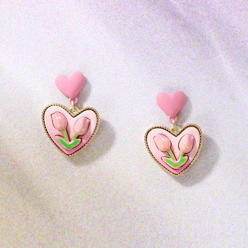 ハートチューリップイヤリング/ピアス CH3043