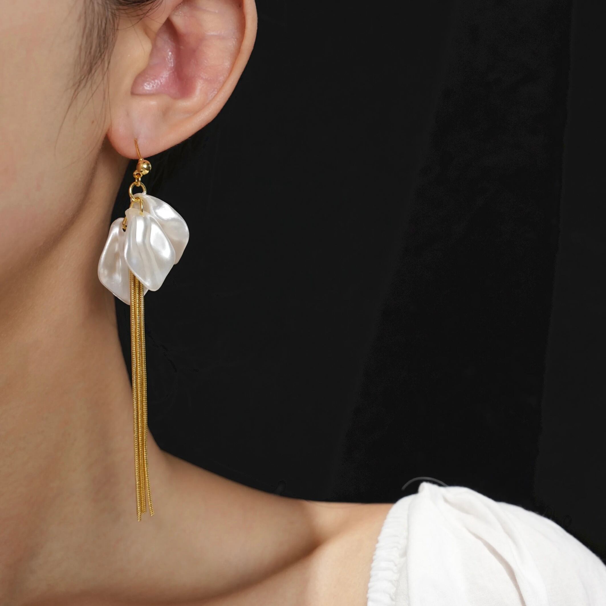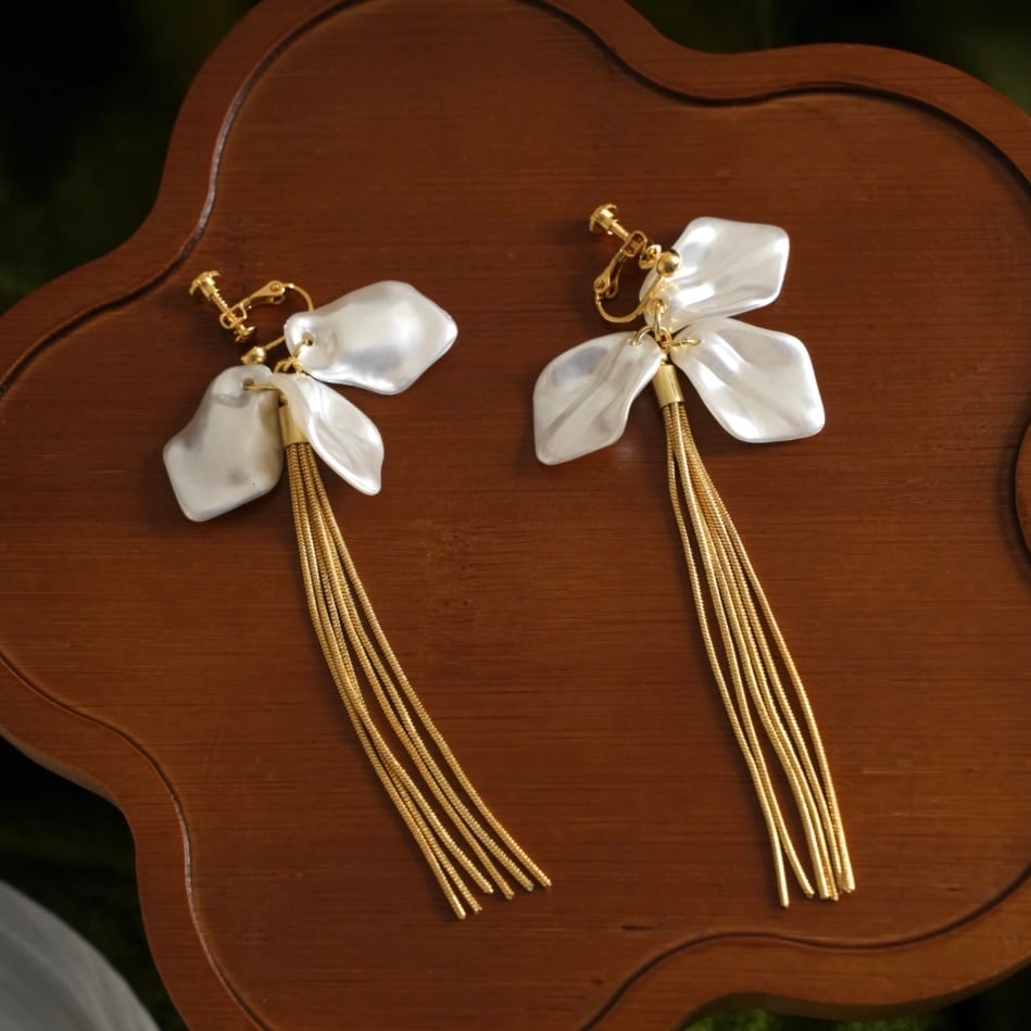 保留フラワーゴールドタッセルイヤリング CH3090