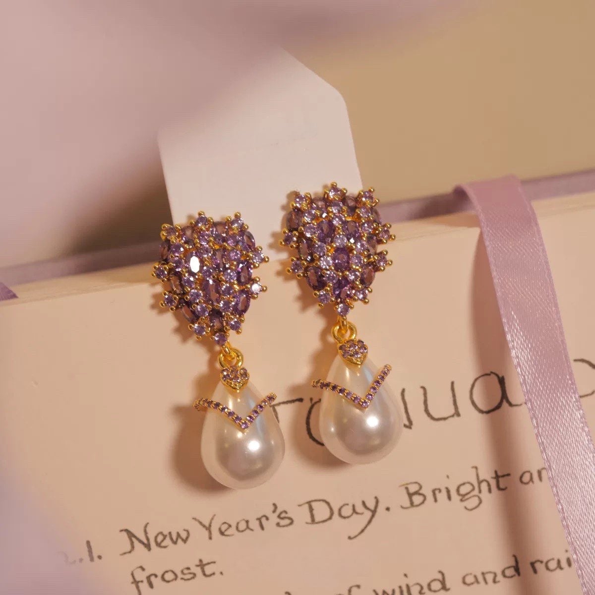 パープルビジューパールイヤリング/ピアス CH3093