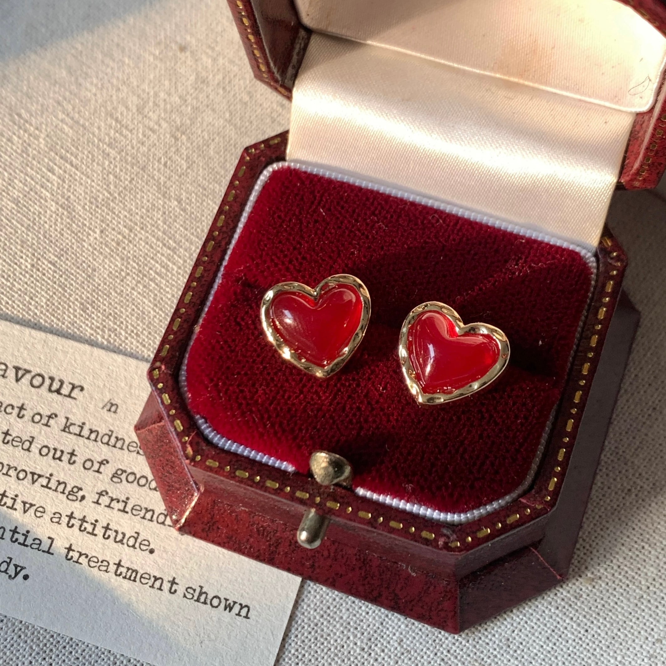 ゴールドレッドハートイヤリング/ピアス CH3101