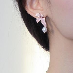 ピンクフラワーパールイヤリング/ピアス CH3114