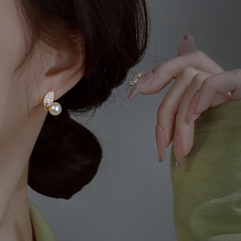 ビジューリーフパールピアス CH2369