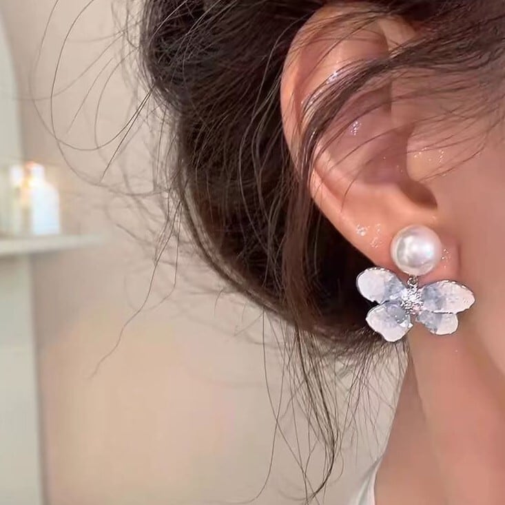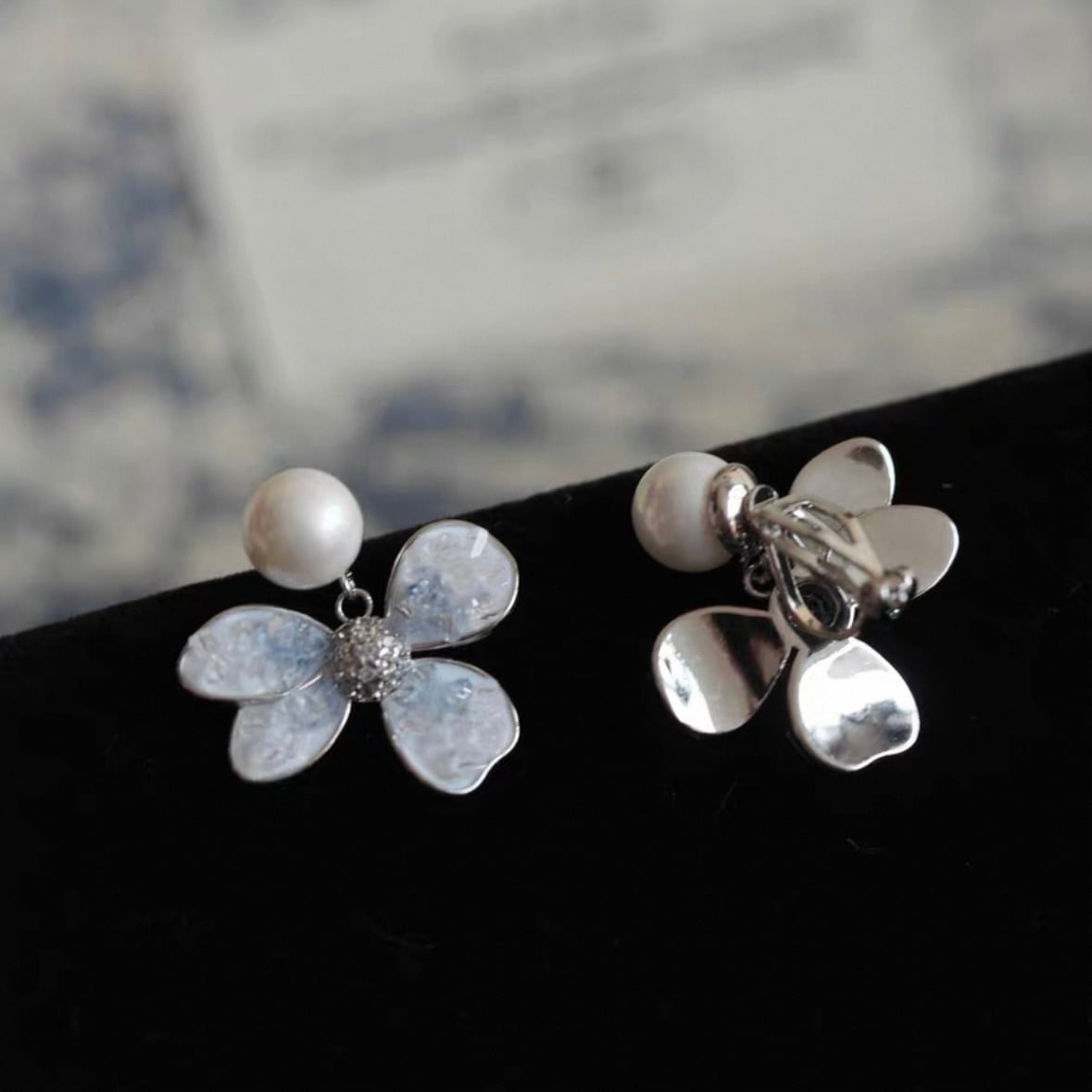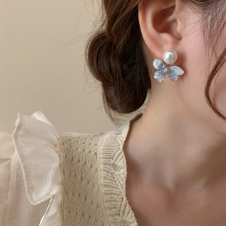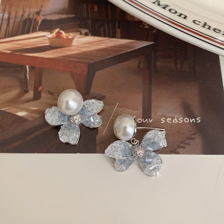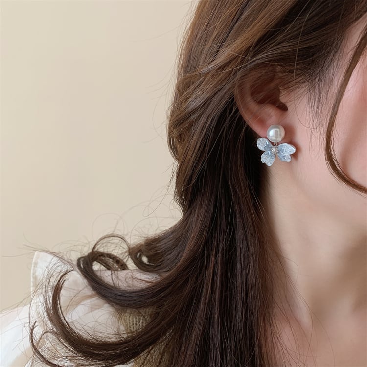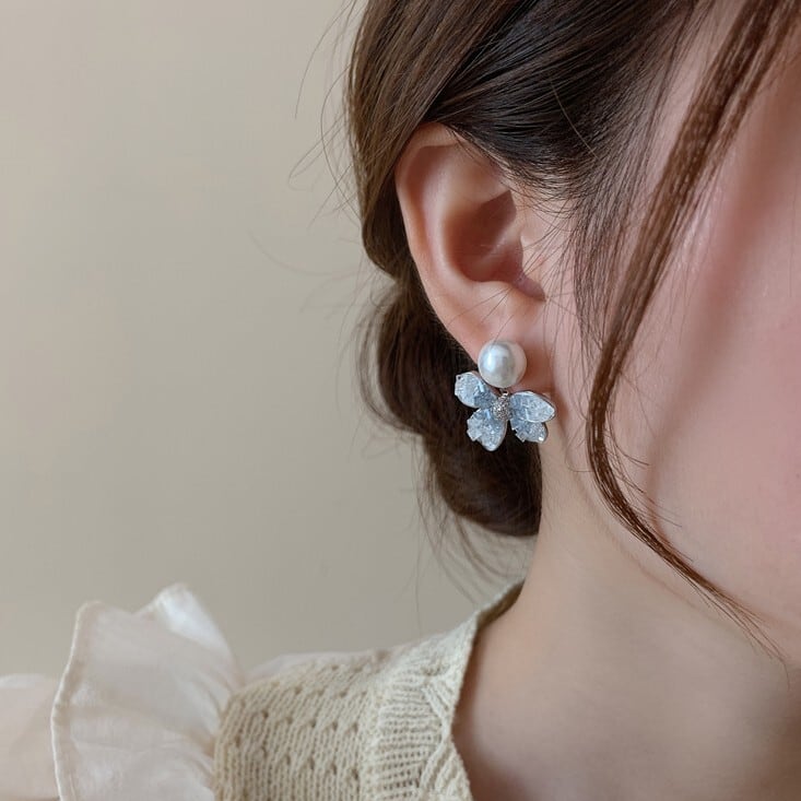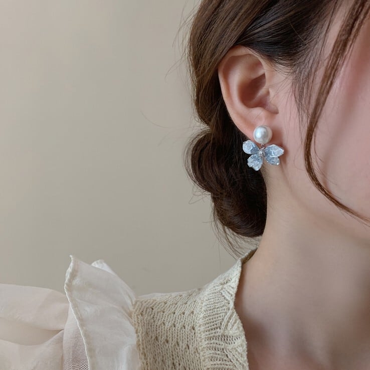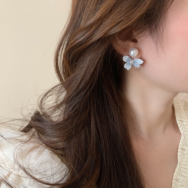 パールブルーフラワーイヤリング/ピアス CH2709
